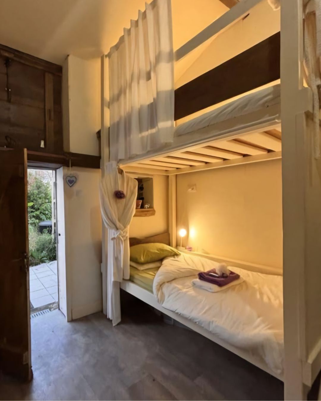 Our accommodation is a tastefully restored barn where we have created an 8 bed Dortoir or ‘sleeping room’. The en-suite shower room is spacious and has 2 private shower rooms and a dressing area. Dressing gowns, bedding, towels and toiletries are supplied at no extra charge. All our accommodation is on one level and has been designed to be fully wheelchair accessible.